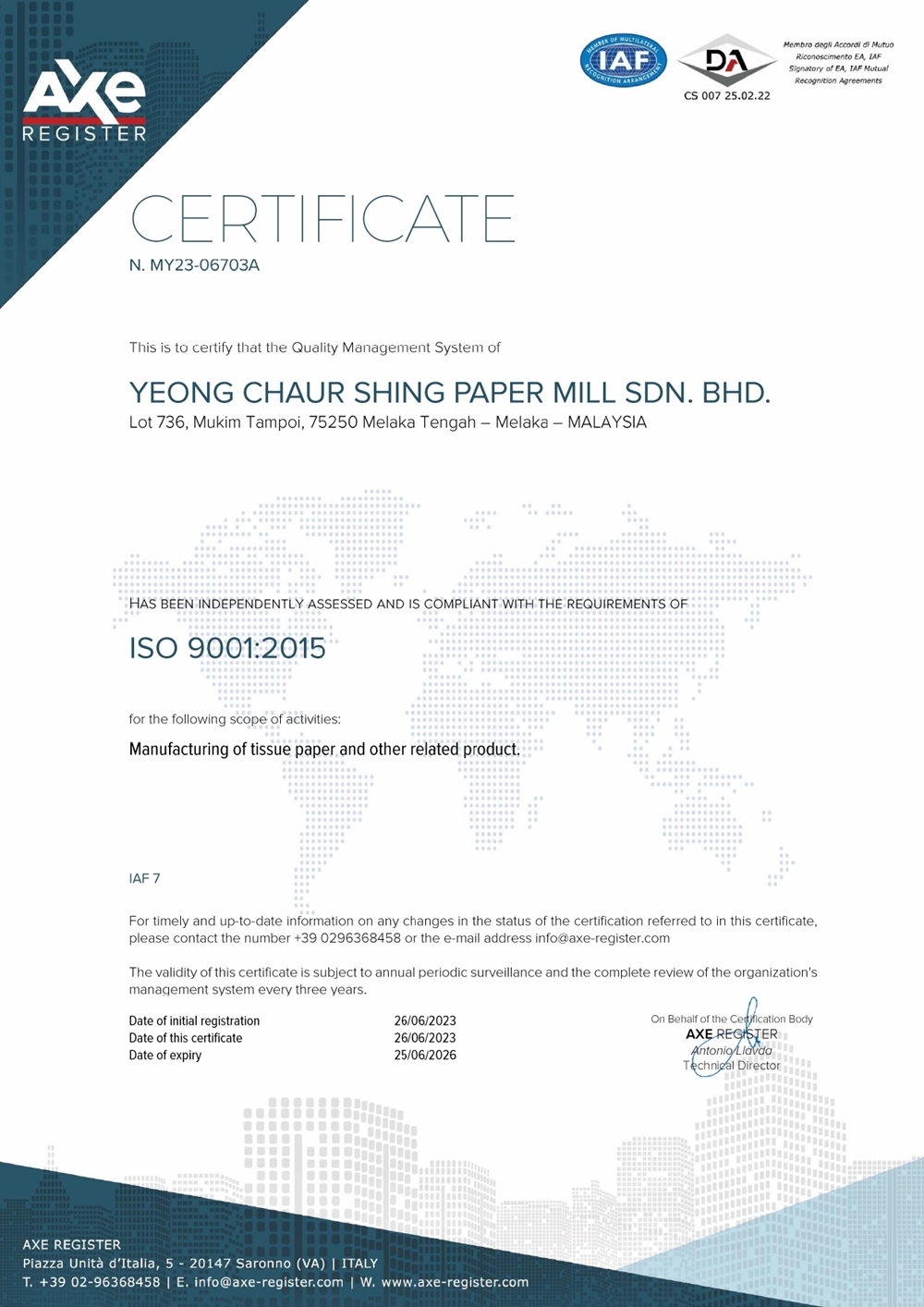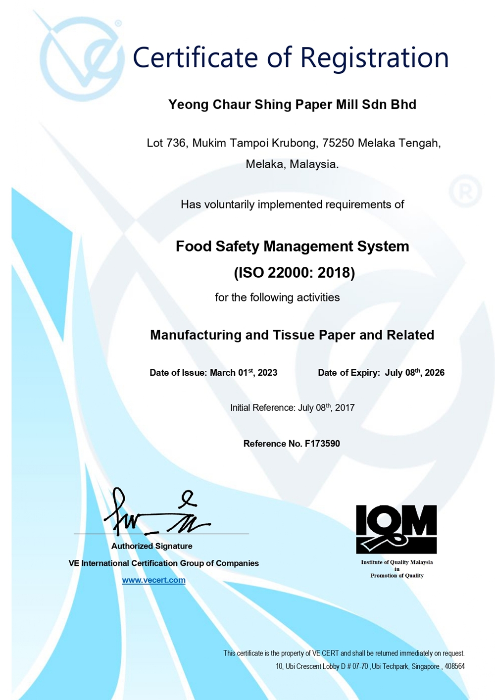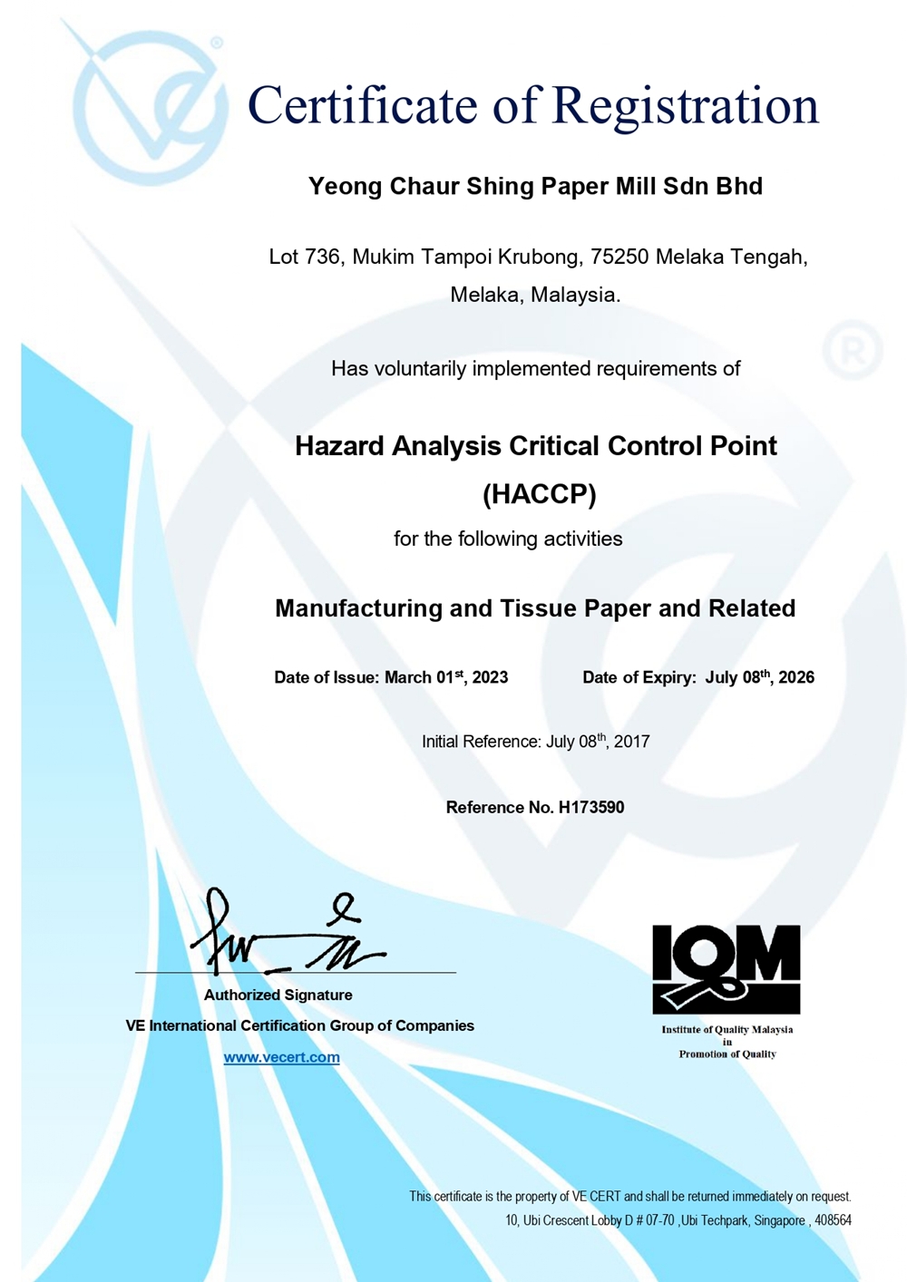 YCS Products is strictly comply to many high standard certificates to encourage greater peace of mind to our customer that our product is of highest quality and to meet the industrial benchmarks.