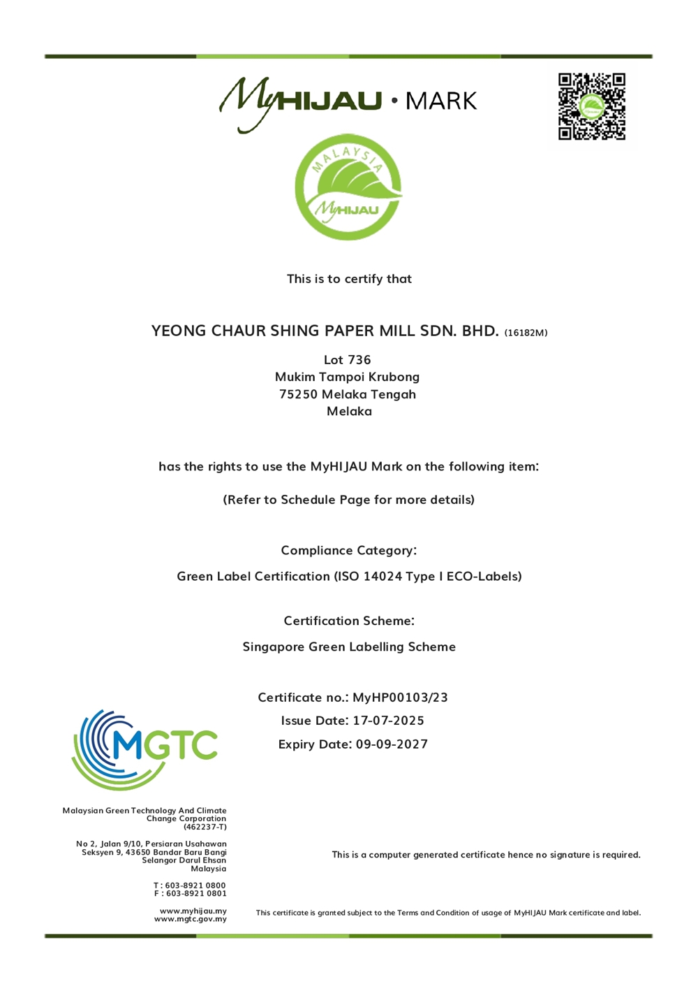 Malaysia MyHIJAU Mark
